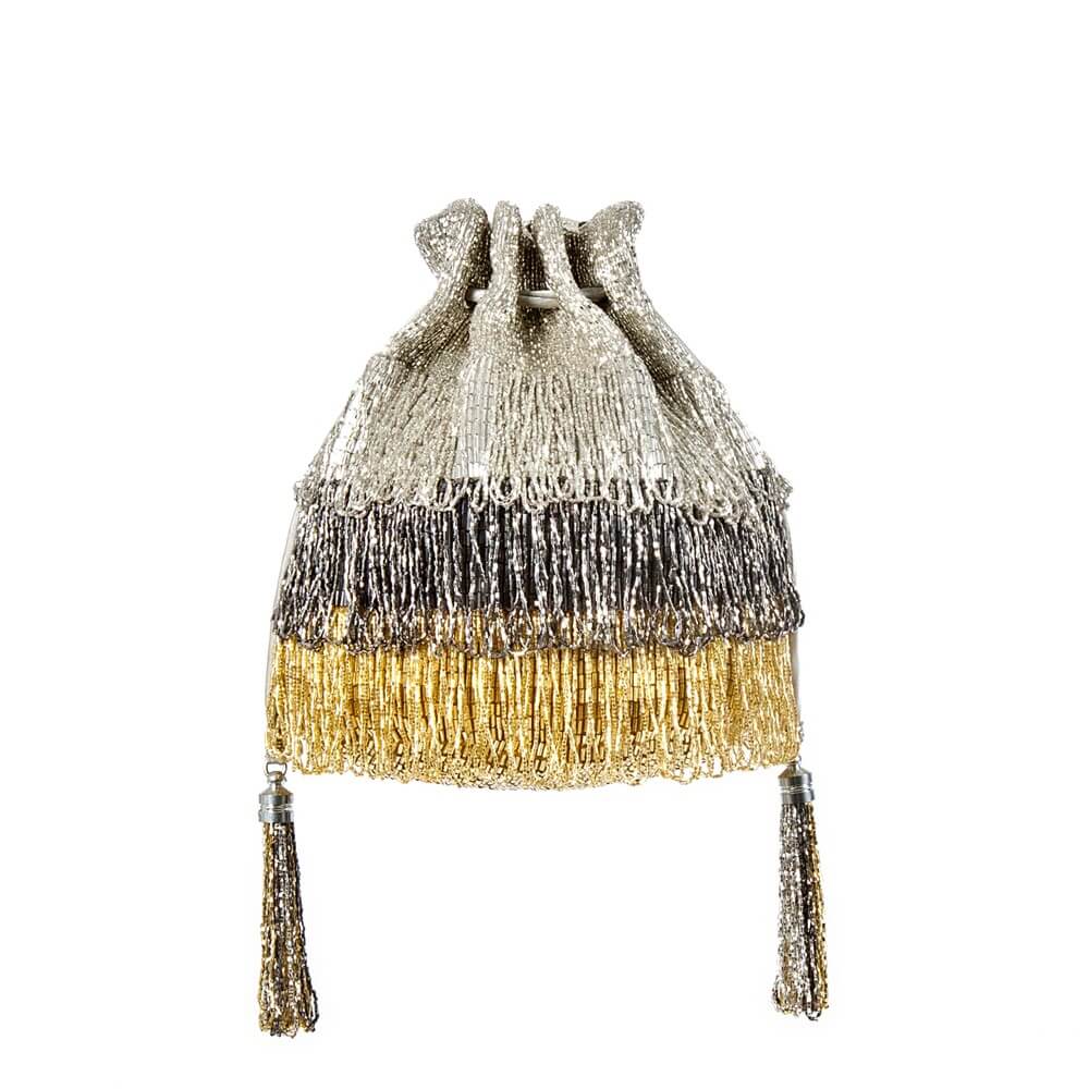 Celebratio, COD, Collection, Festival of Colors, Gilded Glam, Glam Golds, Glam Golds At Special Prices, Glimmering Golds, Latest Bestsellers, Metallics, Most Loved Old, Most Loved Styles, Pouches, Shop, Sparkling Silvers, Special Prices - Style Diaries, Versatile Mixed Metallics Gold and SilverDelicate Japanese glass beads hand embroidered pouch with wristlet and chain handle. Color: Lustrous Silver Peerless Gold MULTI Handle: Detachable long crossbody chain Wristlet Handles Bag Dimensions: Length- 24.5 cms Width- 20.5 cms Composition: Top: Satin Lining: Soft Suedette Usage: Long chain Crossbody Shoulder Sling Hand-held₹9,900₹9,900 -