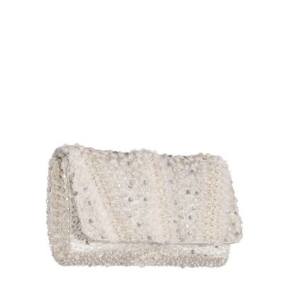 Cherish, Clutches, COD, Collection, Most Loved, New, Pearls and Pastels, ShopThe ethereal design of Veira Flapover Clutch Ivory has been decadently hand-embroidered inspired by the serpent skin texture. It is embellished with lustrous Japanese beads, freshwater baroque pearls, rhinestones and delicately manicured fur. The addition of our signature embellished handle makes it a statement accessory. This collectible statement accessory fits in your valuables like a smartphone, makeup, keys, currency and cards. Color: Pristine Ivory Handle: Detachable long crossbody chain Embellished handle Bag Dimensions: Length- 18 cms Width- 10.5 cms Depth- 6.5 cms Composition: Top: Satin Lining: Soft Suedette Usage: Long chain Crossbody Hand-held Shoulder Sling Double chain shoulder bag₹11,900₹11,900 -