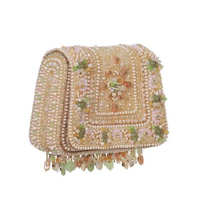 Bestsellers, Cherish, Clutches, Collection, Elite Minis, Gemstone Wonder, Magic of Multicolor, Minis, New Arrivals, Now Trending, Pearls and Pastels, Ready to Ship, Shop, Tassel Treasures, Valentine's Day Gifts, Wedding and FestiveInspired by opulent encrusted legacy Jadau and Polki jewellery, the Amara Mini Trapezium Sublime Pastel Multi is embellished with semi-precious nuggets, stones, kundans and lustrous gold silver Japanese beads. Our mini trapezium bag is a compact and edgy silhouette. This flapover is designed with soft edges. It comes with a detachable sling chain. This collectible statement accessory fits in your valuables like makeup, keys, currency and cards. Color: Sublime Pastel Multi Handle: Detachable long crossbody chain Bag Dimensions: Length- 13.5 cms Width- 5.5 cms Height- 10.5 cms Composition: Top: Velvet Lining: Soft Suedette Usage: Hand-Held Long chain Crossbody Shoulder Sling Double chain shoulder bag₹8,900₹8,900 -
