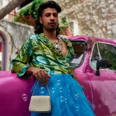 Burst The Bubble, Cherish, Clutches, Collection, Elite Minis, Minis, Ready to Ship, Shop, Valentine's Day GiftsInspired by the eclectic rainbow colour palette of semi-precious Tourmaline stones, this vibrant style is delicately hand embroidered with fine japanese bugle beads in a perfect ombre. Our mini trapezium bag is a compact and edgy silhouette. This flapover is designed with soft edges. It comes with a detachable sling chain. This collectible statement accessory fits in your valuables like makeup, keys, currency and cards. Color: Tourmaline Rainbow Handle: Detachable long crossbody chain Bag Dimensions: Length- 13.5 cms Width- 5.5 cms Height- 10.5 cms Composition: Top: Satin Lining: Soft Suedette Usage: Long chain Crossbody Shoulder Sling Double chain shoulder bag₹6,400₹6,400 -