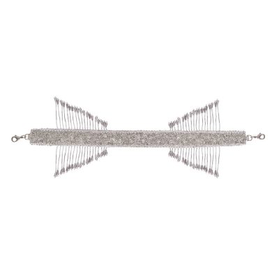Collection, Embellished Handles, Handles, NOCOD, Shop, Sparkling Silvers, Valentine's Day GiftsThis signature feature handle is delicately hand embroidered with Lustrous Japanese micro beads, crystals and diamanté’. It is a detachable statement add on that grants versatility to any heirloom bag , enabling the opportunity to wear the bag in multiple ways or take it from day to night. With detachable doghooks on both ends, the glittering radiance of the crystal tassels augments the playful & youthful demeanour of any bag. Color: Lustrous Silver Handle Dimensions: Length- 34 cms Width- 2.5 cms Composition: Top: Satin Lining: Suedette Usage: Bag Handle₹2,000₹2,000 -