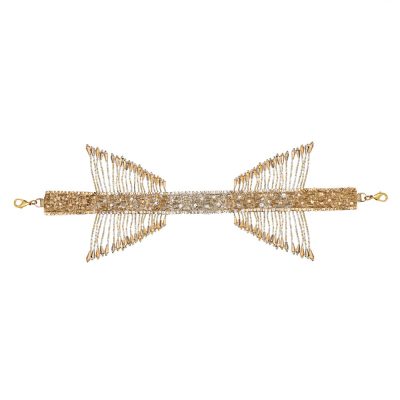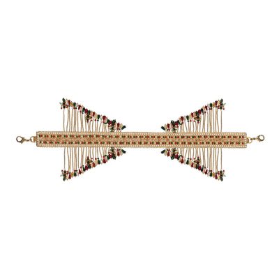 Collection, Embellished Handles, Handles, NOCOD, Old World Charm, Shop, Valentine's Day GiftsThis signature feature handle is delicately hand embroidered with Lustrous Japanese micro beads, crystals and diamanté’. It is a detachable statement add on that grants versatility to any heirloom bag , enabling the opportunity to wear the bag in multiple ways or take it from day to night. With detachable doghooks on both ends, the glittering radiance of the crystal tassels augmentss the playful & youthful demeanour of any bag. Color: Antique Gold Handle Dimensions: Length- 34 cms Width- 2.5 cms Composition: Top: Satin Lining: Suedette Usage: Bag Handle₹2,000₹2,000 -