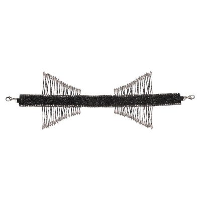 Collection, Embellished Handles, Handles, NOCOD, Old World Charm, Shop, Valentine's Day GiftsThis signature feature handle is delicately hand embroidered with Lustrous Japanese micro beads, crystals and diamanté’. It is a detachable statement add on that grants versatility to any heirloom bag , enabling the opportunity to wear the bag in multiple ways or take it from day to night. With detachable doghooks on both ends, the glittering radiance of the crystal tassels augmentss the playful & youthful demeanour of any bag. Color: Antique Silver Heritage Black Handle Dimensions: Length- 34 cms Width- 2.5 cms Composition: Top: Satin Lining: Suedette Usage: Bag Handle₹2,000₹2,000 -