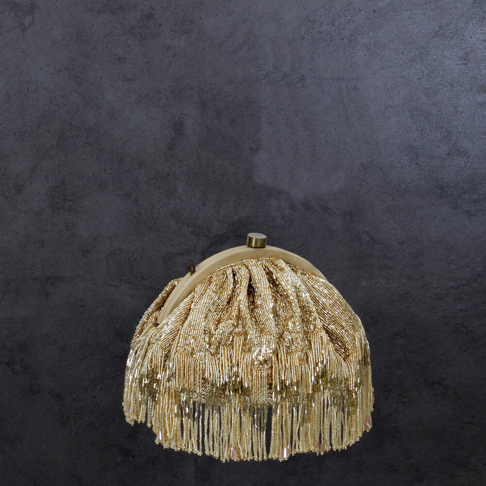 All That Glitters, Bestsellers, COD, Collection, Embracing Legacies, Festive Flair, Glam Golds, Glam Golds At Special Prices, Glimmering Golds, Gold and Silver, Gold Pop, International Women's Day, La Belle Epoque, Latest Bestsellers, Metallics, Modern Heirlooms, Most Loved, Most Loved Old, Most Loved Styles, Most Wishlisted, Mother's Day Special, Neutrals, Ornamental Chic, Party Edit, Potlis, Shop, Summer Wedding Edit, Timeless Potlis At Special Prices, Trending on Instagram, Valentine's Day Gifts, Valentines Day OfferInspired by the opulence of the golden period in French history called La Belle Epoque, this potli pouch is intricately hand embroidered with sublime Japanese bugle beads. The tiered tassels are in neutral tones adding a sense of vintage glamor to the design. The pouch doubles up as a sling bag and a potli. Color: Peerless Gold Handle: Detachable long crossbody chain Wristlet Handles Embellished handle Bag Dimensions: Length- 24 cms Width- 26 cms Composition: Top: Satin Lining: Soft Suedette Usage: Long chain Crossbody Hand-held Shoulder Sling₹13,900₹13,900