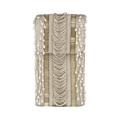 Cherish, Collection, Mobile Pouches, New Arrivals, Pearls and Pastels, Resort, Shop, Tassel TreasuresThe Joel design pays homage to heritage jaali work, capturing its mysterious play of light and shadow through intricate pearl and beadwork. Natural pearl drops enhance its graceful demeanour. The Lovetobag Mobile Pouch is a neomodern mini bag to carry your smartphone on the move. Color: Pristine Ivory Handle: Detachable long crossbody chain Bag Dimensions: Length- 17.5 cms Width- 10 cms Depth- 2.5 cms Composition: Top: Satin Lining: Soft Suedette Usage: Long chain Crossbody Shoulder Sling Size Adjustable belt bag₹5,900₹5,900 -