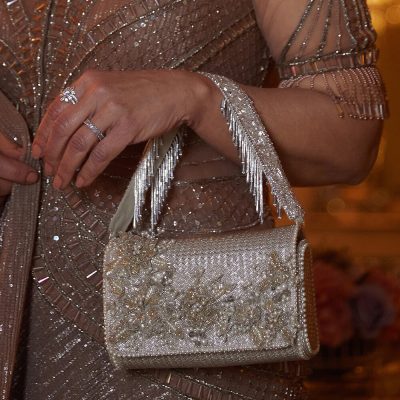 COD, Collection, East Meets West, Gold and Silver, Iris, Latest Bestsellers, Most Loved, Party, Pouches, Resort, Shop, Sparkling Silvers, The Cocktail Hour, Valentine's Day GiftsThis elegant pouch is delicately hand embroidered with fine japanese bugle beads. A modern combination of classic colors Ivory, silver, bronze and black adorn our soft pouch. Color: Lustrous Silver Handle: Detachable long crossbody chain Embellished handle Bag Dimensions: Length- 26 cms Width- 16 cms Composition: Top: Satin Lining: Soft Suedette Usage: Long chain Crossbody Hand-held Shoulder Sling₹11,900₹11,900 -