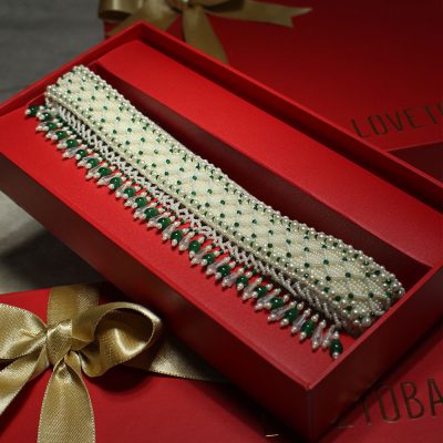 Cherish, Collection, Shop, Waist BeltsThe ethereal design has been decadently hand-embroidered inspired by the serpent skin texture. The Kiah Belt Pristine Ivory Ruby Red is an elegant statement piece of accessory. Embellished with Japanese ivory beads, iridescent crystals, quartz nuggets and semi precious emerald stones, it has ornate tassels. Color: Pristine Ivory Ruby Red Waist Belt Dimensions: Length- 65 cms Width- 3.5 cms Composition: Top: Satin Lining: Soft Suedette Usage: Size Adjustable Waist Belt Shoulder Handle₹6,900₹6,900 -
