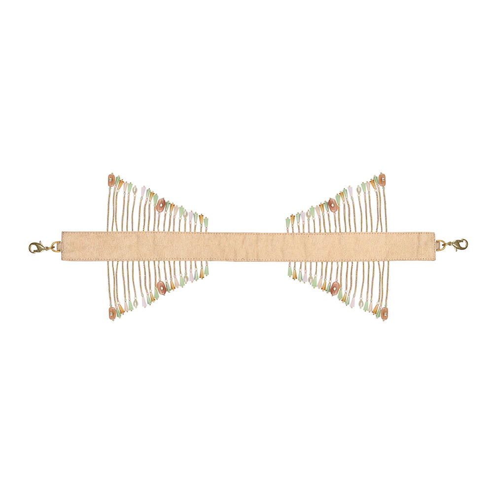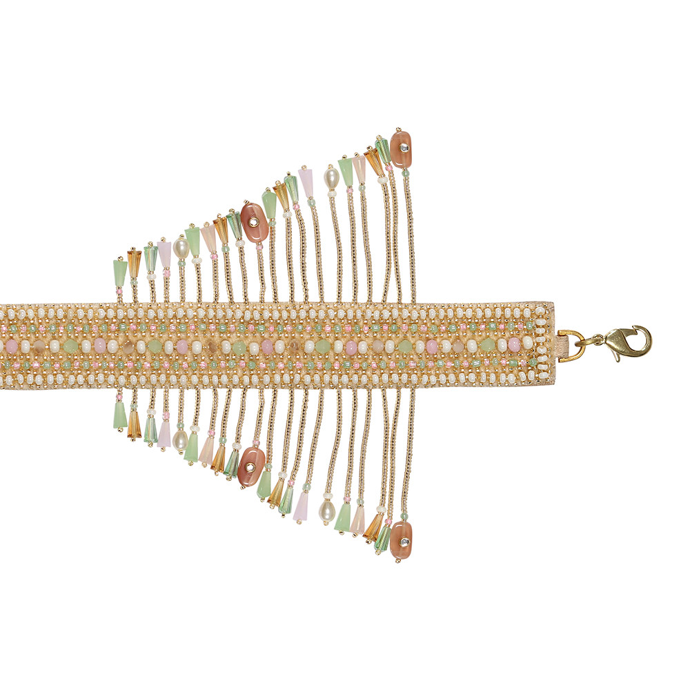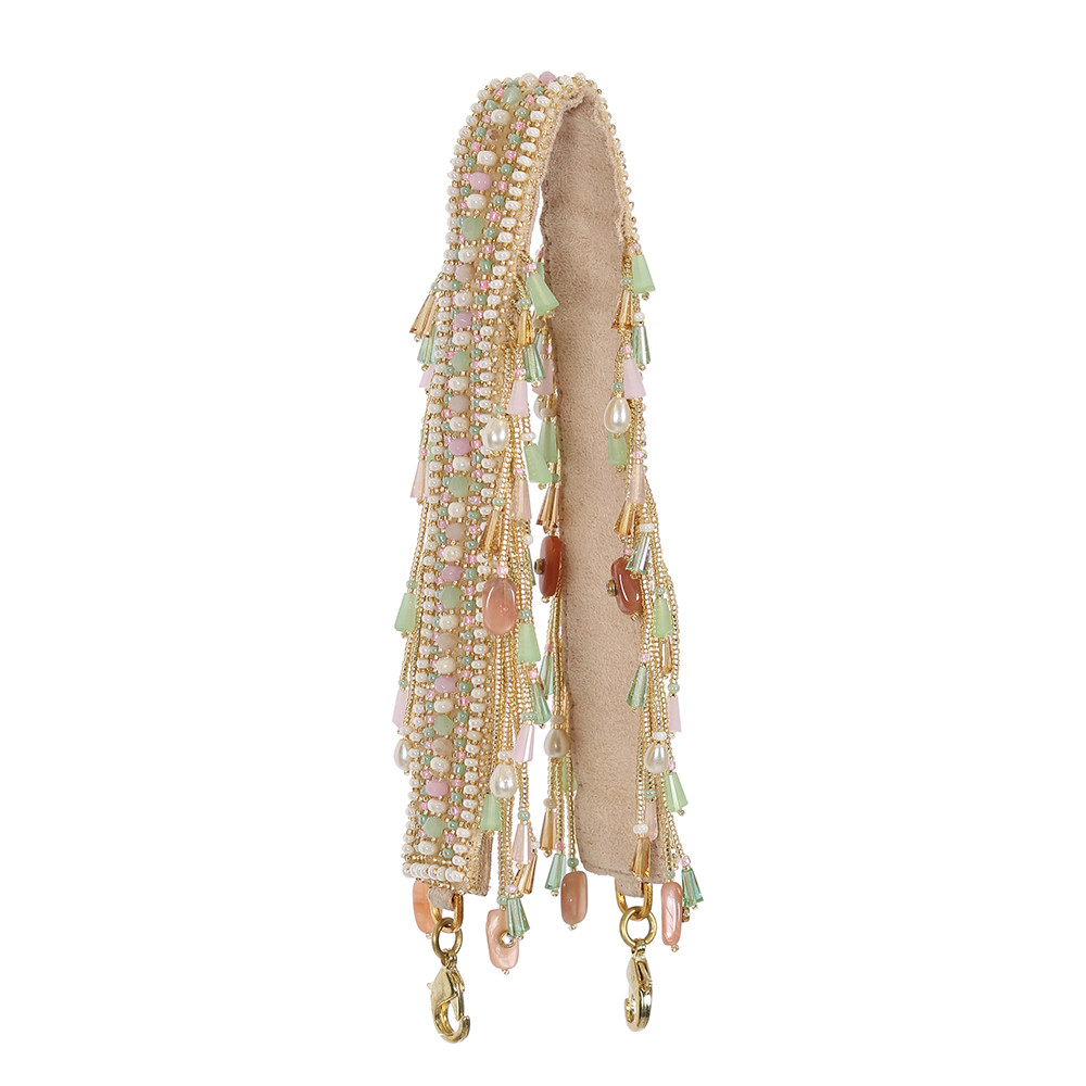 The Lovetobag embellished handle is our signature addition to make your bag an exquisite piece of art. It can be detached and interchangeably used with other Lovetobag bags. The surface is embellished with semi precious stones, crystals and japanese beads. The cascading tassels with semi-precious quartz, nuggets, crystals and pearls augment the playful & youthful demeanour of any bag.