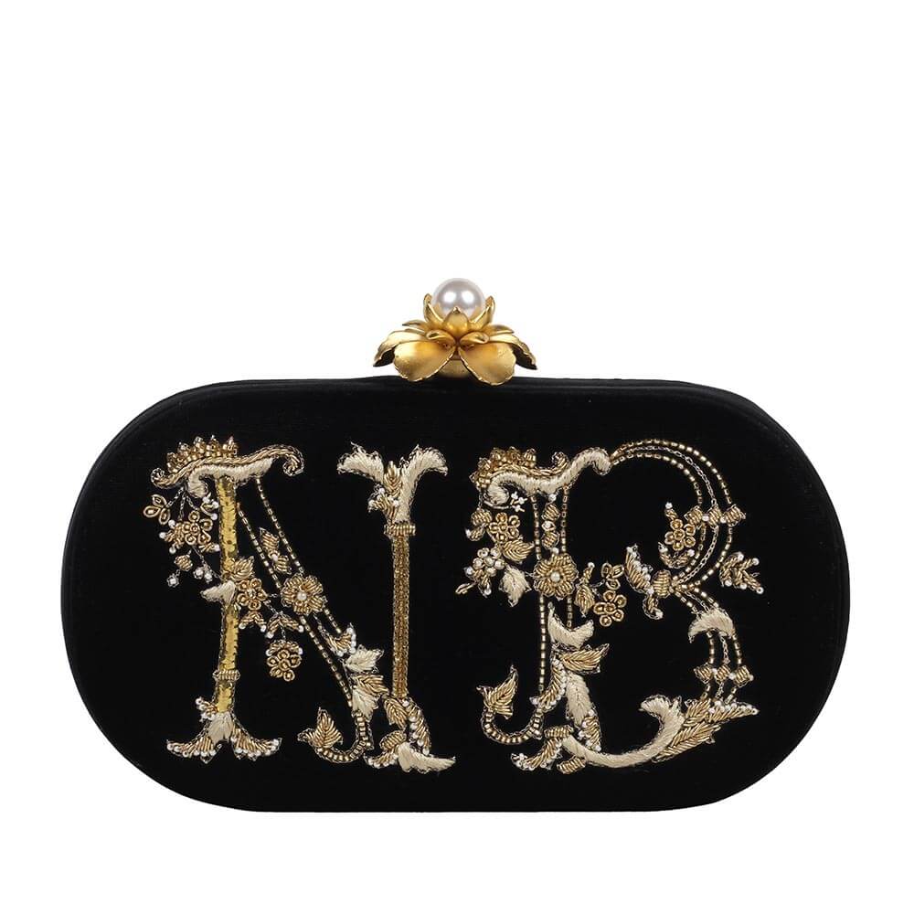 Whats in a name they say! This special caligraphy monogram clutch is a personalized piece. It is hand embroidered with the desired initials in zardosi using fine dabka,beads and threads. It comes with a handmade flower lock and long chain handle. Note -We can do monograms in any language, please email us your initials at info@lovetobag.com