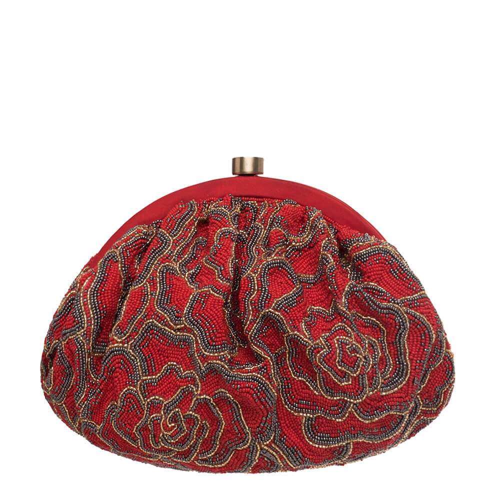 This frame pouch is intricately hand embroidered with fine Japanese seed beads . The pattern reflects the exuberance of roses with an ombre’ effect.