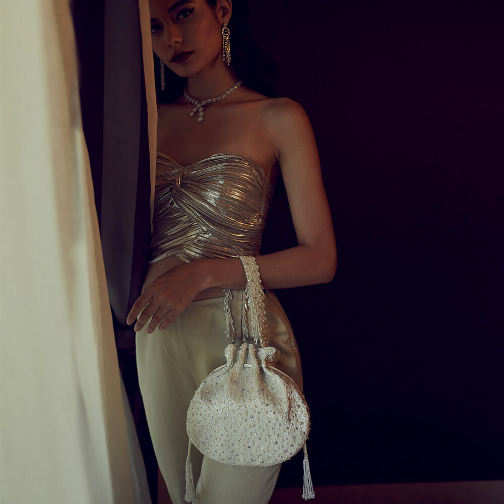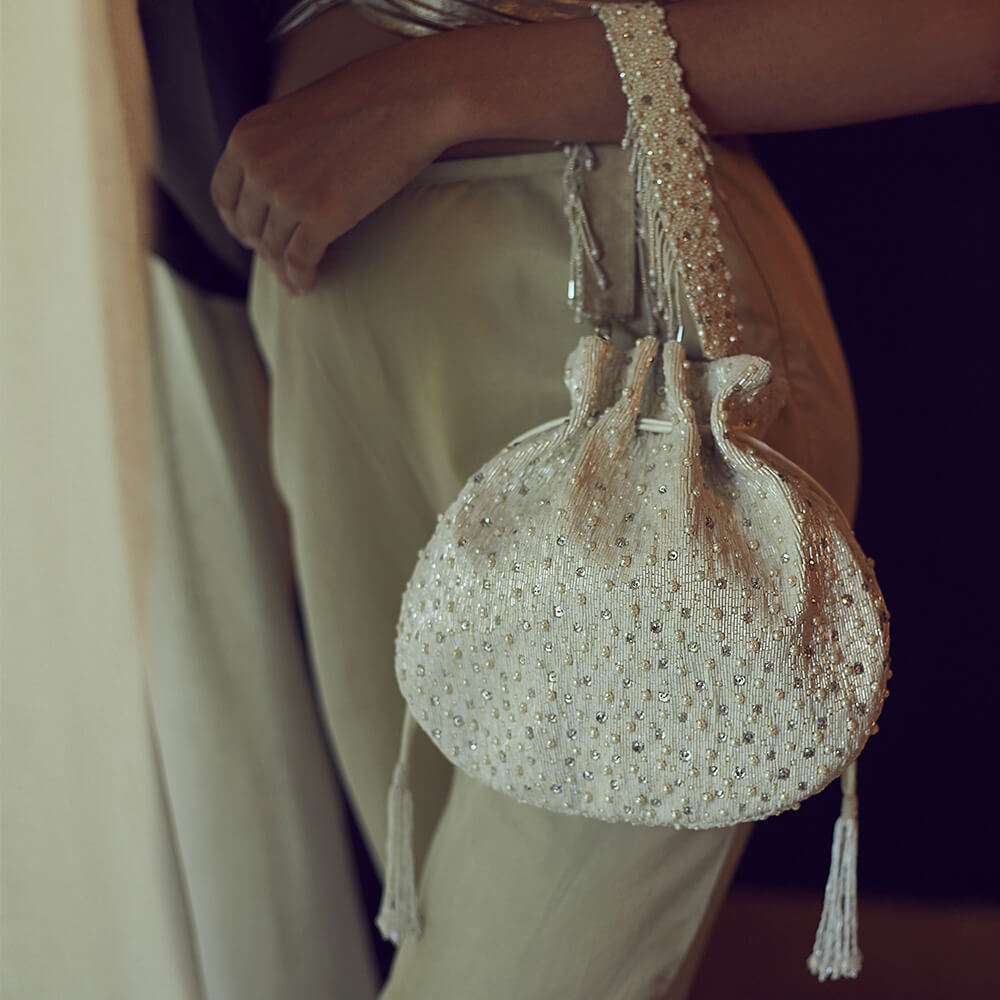 Eclat Potli Pristine Ivory With Handle
