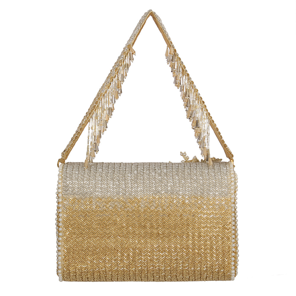 Esme Flapover Clutch Peerless Gold Lustrous Silver With Handle