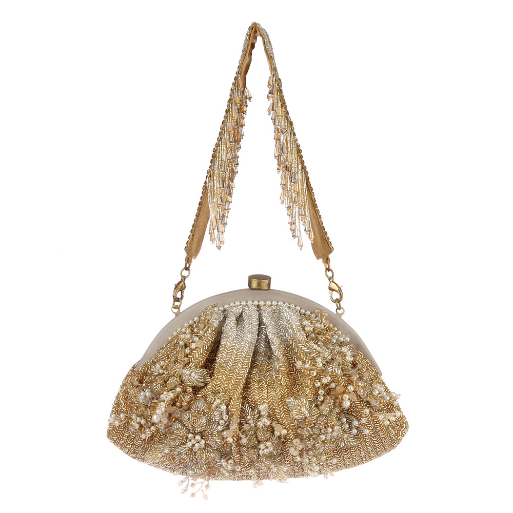 ESME Soft Pouch Peerless Gold Lustrous Silver With Handle