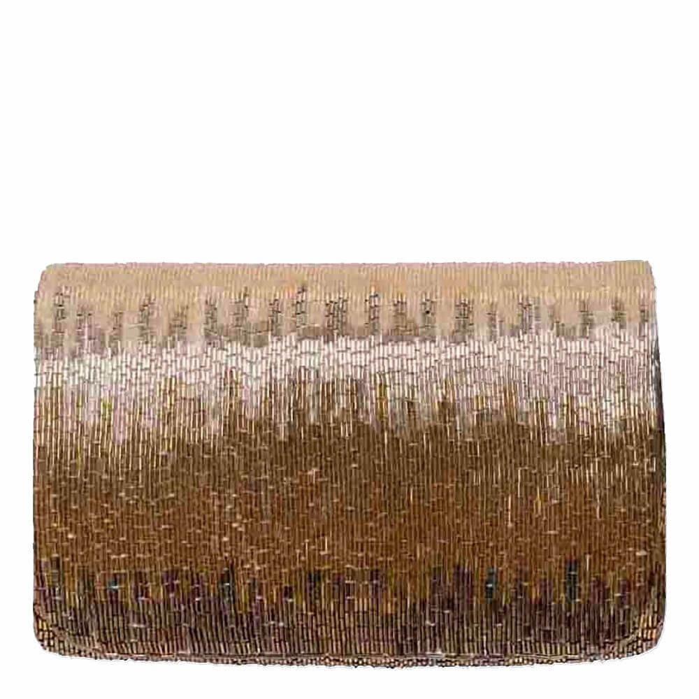 This elegant flapover clutch is delicately hand embroidered with fine japanese bugle beads. The design has an iredescent feel, transporting one to an awe inspiring world of fantasy. STYLE TIP: Carry with your blue denims, classic blouses, maxis, evening ensembles as well as traditional Indianwear for a chic look.