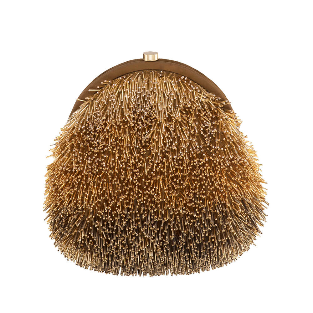 This frame pouch is delicately hand embroidered with fine Japanese beads creating an ombre effect. The design reflects the fur like texture of fresh dandelions.