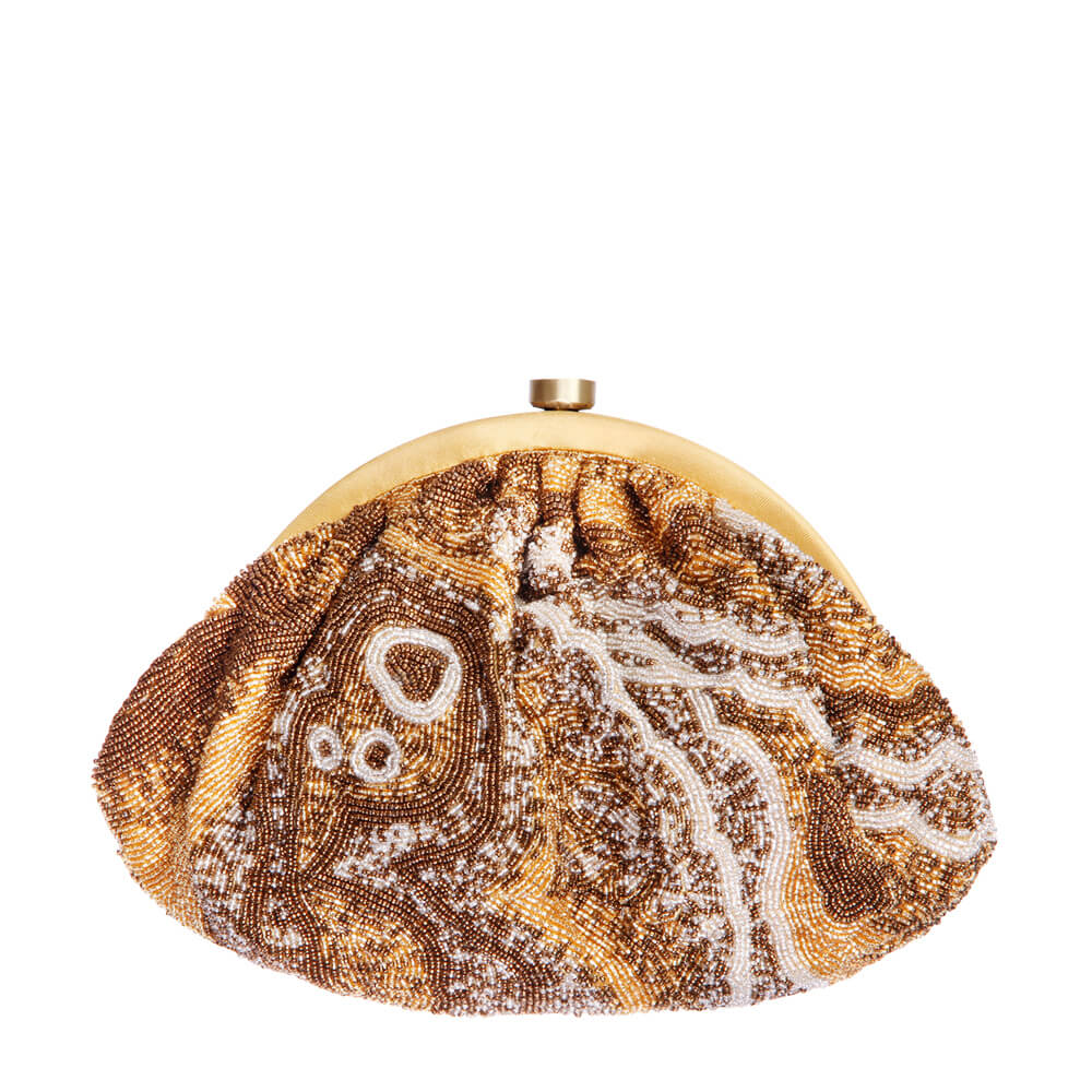 This elegant pouch is delicately hand embroidered with fine japanese beads. The design has a pschyadelic feel, transporting one to an awe inspiring world of fantasy. STYLE TIP: Carry it as a sling bag with your blue denims, classic blouses, maxis, evening ensembles as well as traditional Indianwear for a classic modern look.