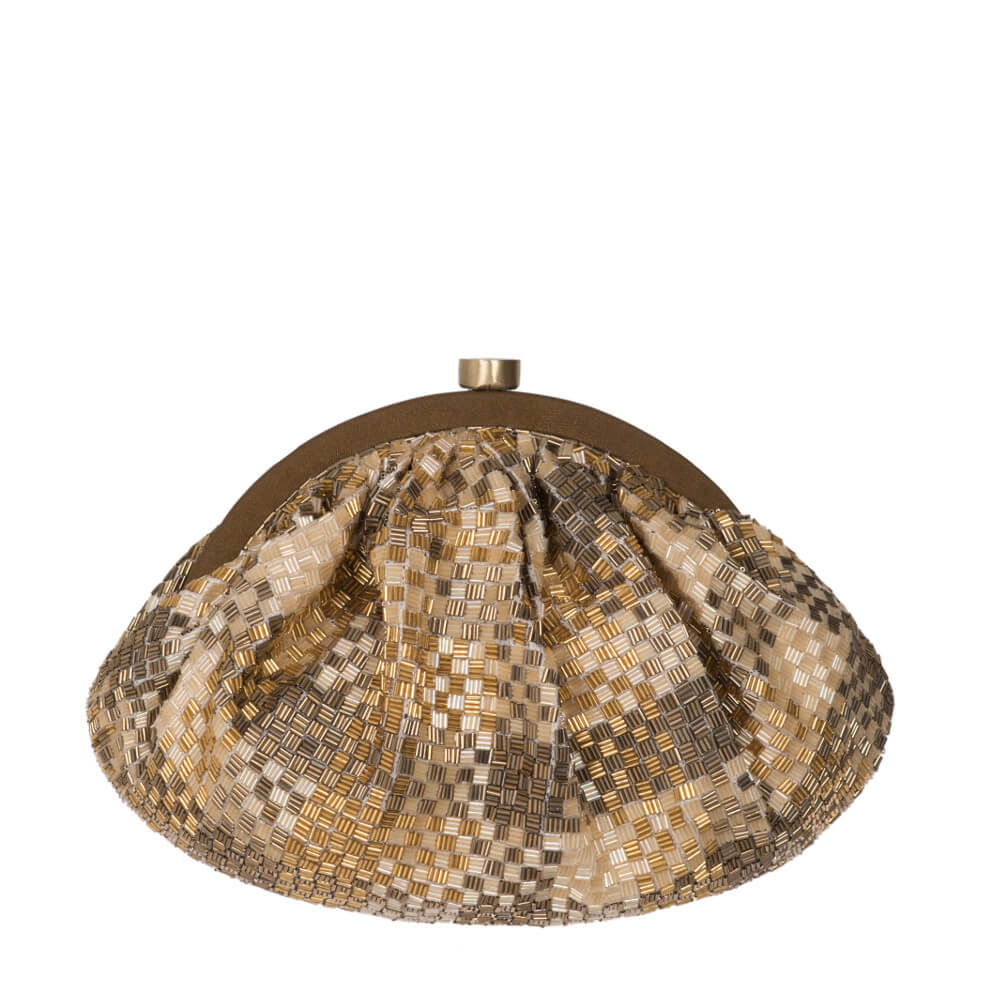 This elegant pouch is delicately hand embroidered with fine japanese bugle beads. The design has an iredescent feel, transporting one to an awe inspiring world of fantasy. STYLE TIP: Carry it as a sling bag with your blue denims, classic blouses, maxis , evening ensembles as well as traditional Indianwear for a boho chic look.