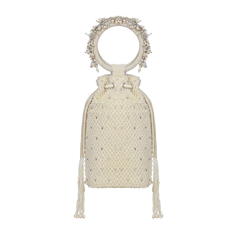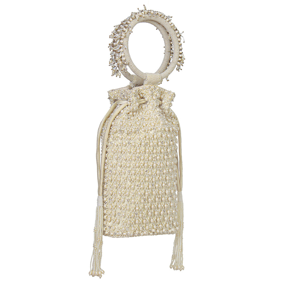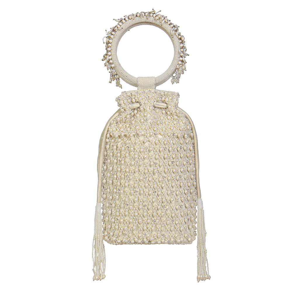 Joel Mini Tablet Potli Pristine Ivory With Bangle Handle