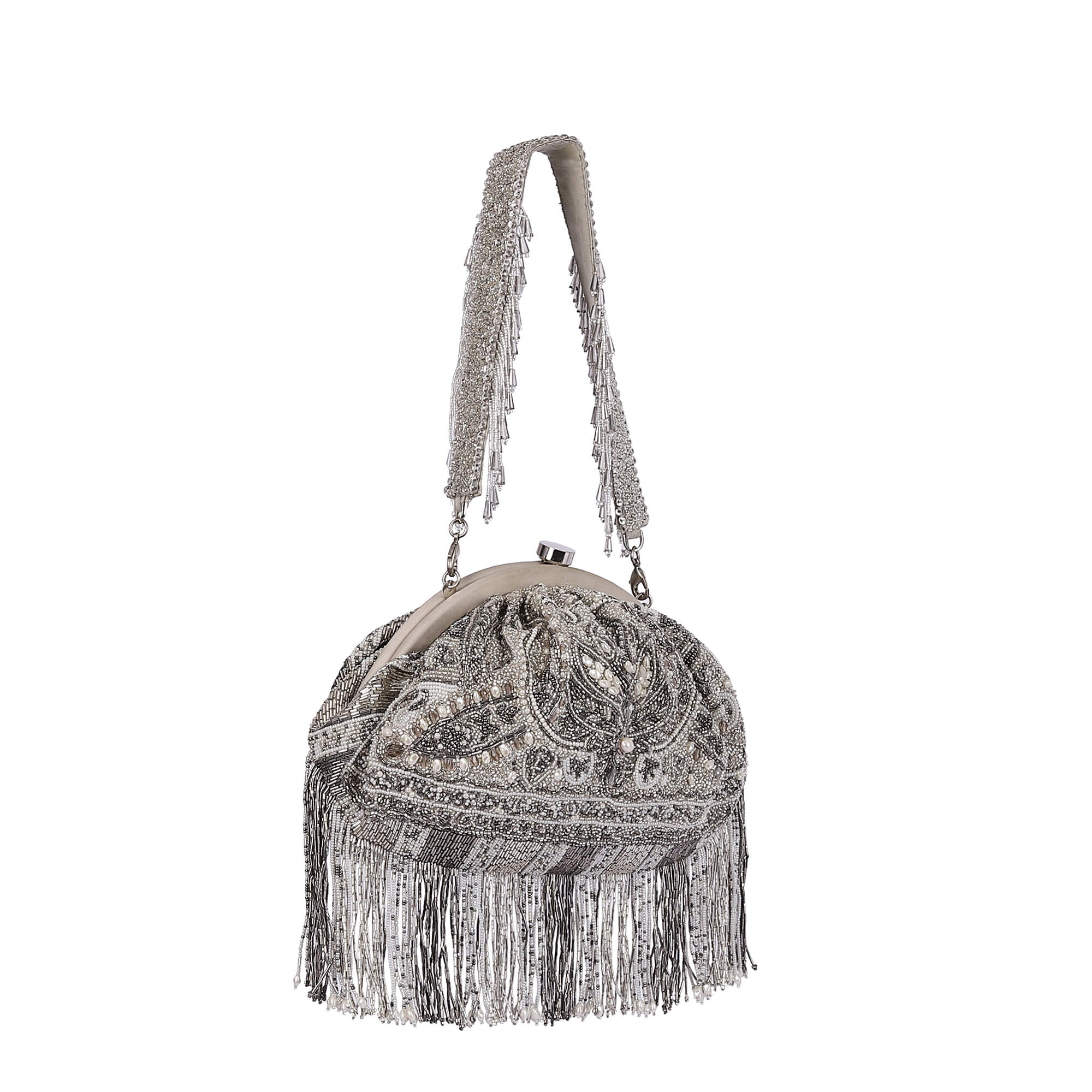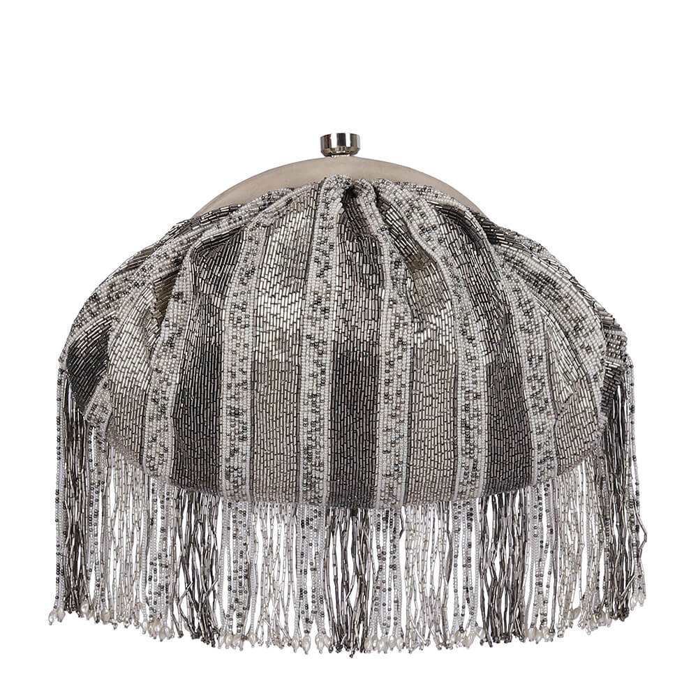 Pashmina Soft Pouch Lustrous Silver With Handle