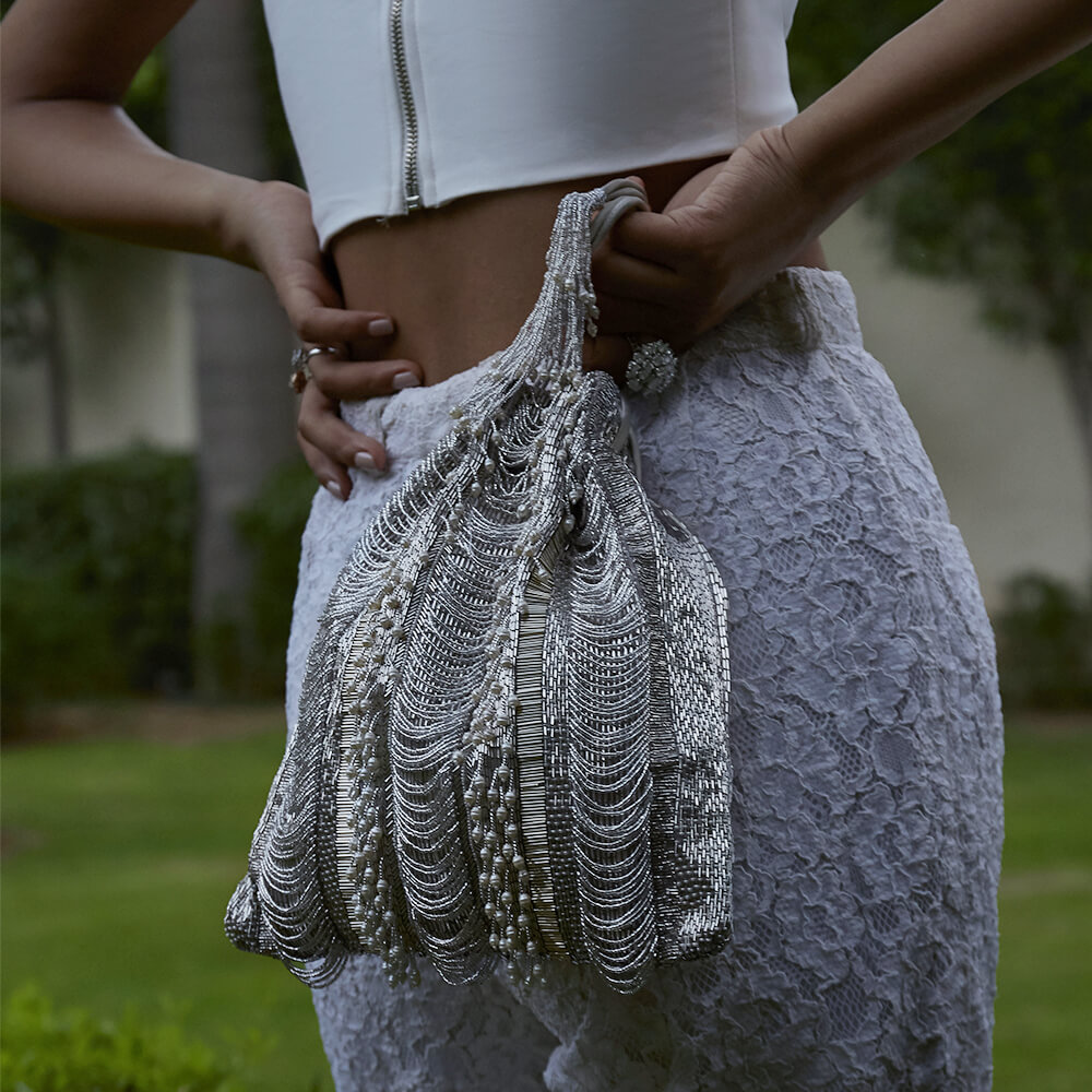 Ruche Potli Lustrous Silver