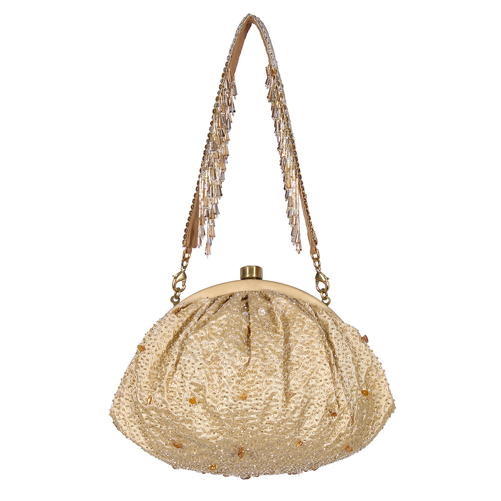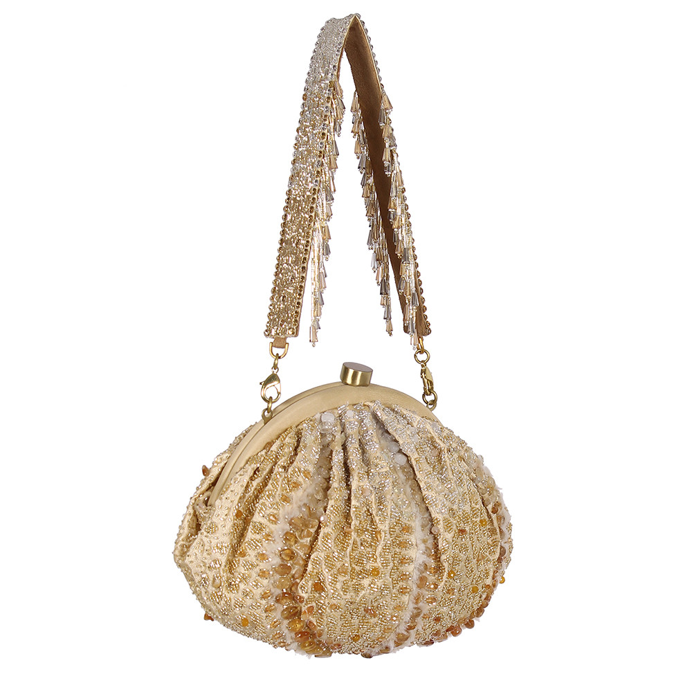 Veira Soft Pouch Peerless Gold Lustrous Silver With Handle